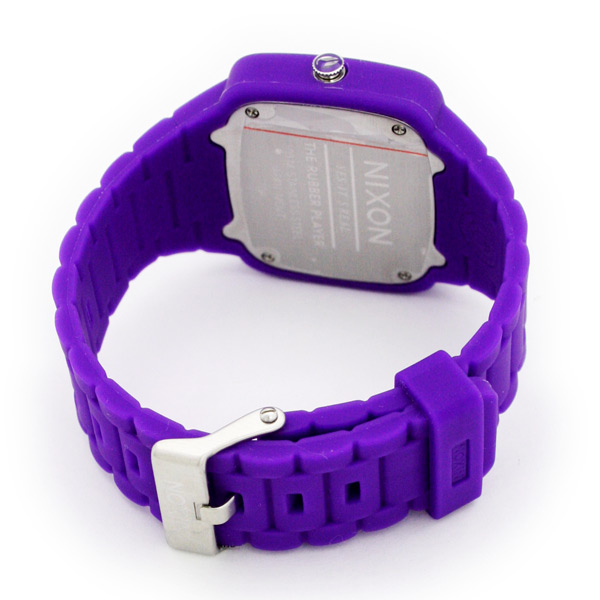 รายละเอียดคุณสมบัตินาฬิกา - ยี่ห้อ : Nixon - รุ่น : A139230 - รูปทรง : เหลี่ยม - ตัวเรือนสี : ม่วง - สายสี : ม่วง - หน้าปัทม์สี : ม่วง ประดับเพชรแท้ - แสดงผล : อนาล๊อก 3 เข็ม - เครื่อง : ควอตซ์ - วัสดุตัวเรือน : ยาง (เบาสบาย) - วัสดุสาย : ยาง (เบาสบาย) - ขนาดตัวเรือน : กว้าง 3.6 ซม. x สูง 4.5 ซม. X ความหนา 1.4 ซม. - สายกว้าง (ประมาณ) : 2.2 ซม. - รอบแขน (สูงสุด) : 20 ซม. - กันน้ำ : 100 เมตร - น้ำหนักประมาณ : 78 กรัม - รับประกันนาฬิกาผ่านศูนย์ไทย 2 ปี