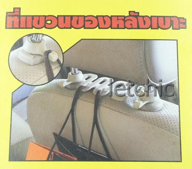 ถอดหัวเบาะรถยนต์ออก นำขาของหัวเบาะเสียบใส่ในรู (รูที่แขวนกว้าง 12.5 มม ) ใส่หัวเบาะกับเข้าที่เดิม สามารถคล้องที่แขวนของในรถได้เลย
